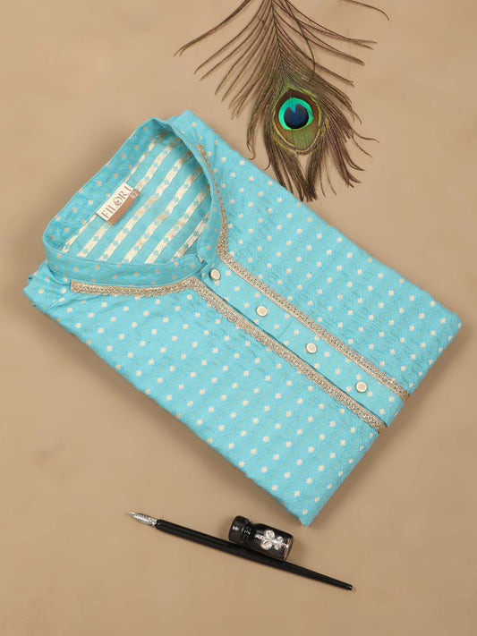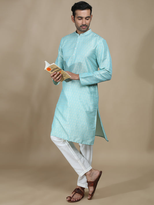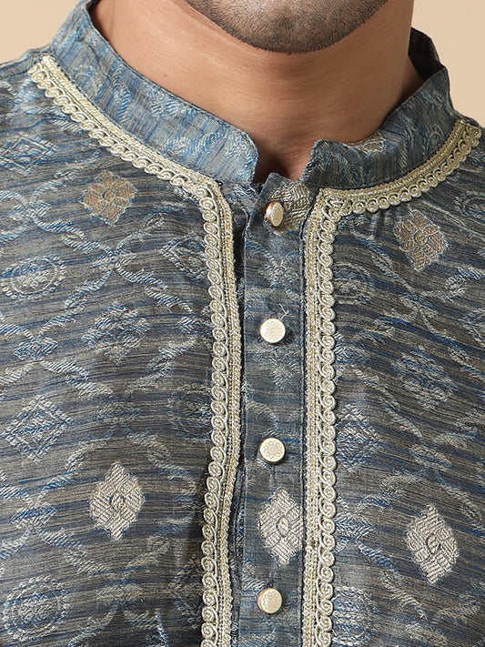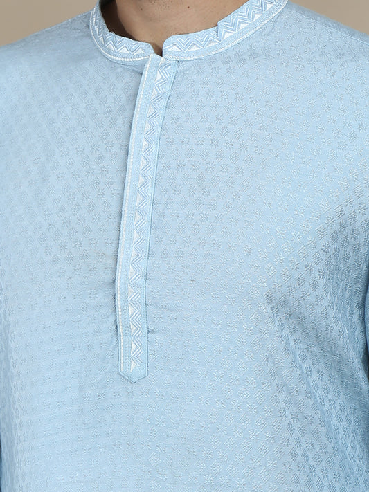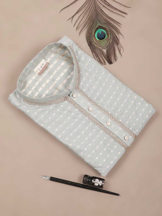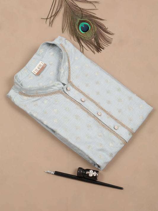 Powder Blue Traditional Motif Banarasi Long Kurta