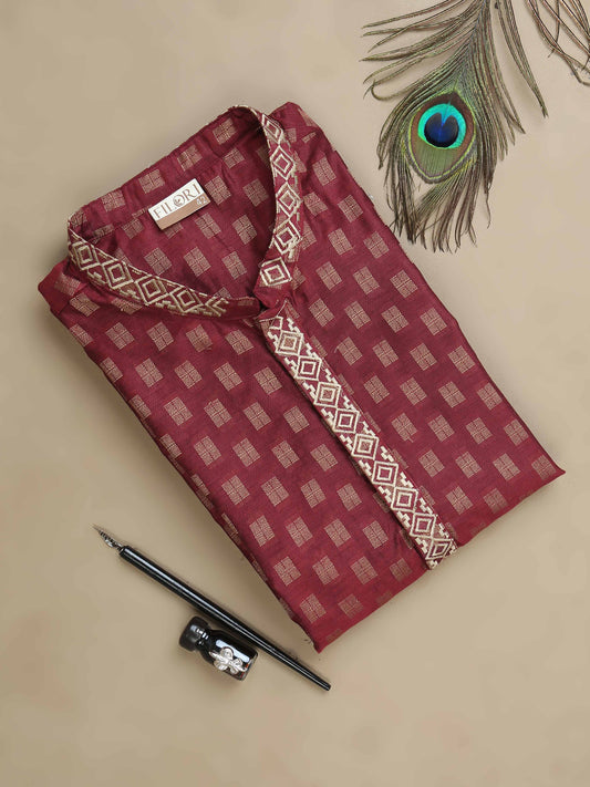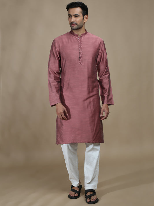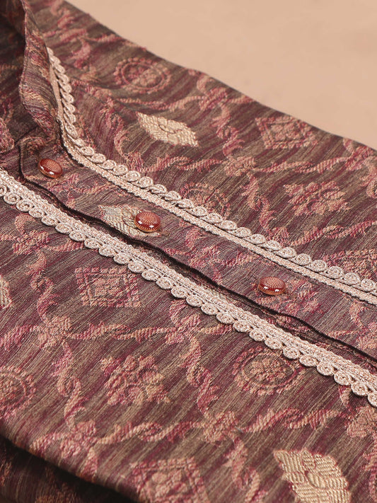 Dusty Rose Traditional Motif Banarasi Long Kurta