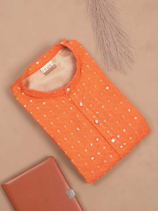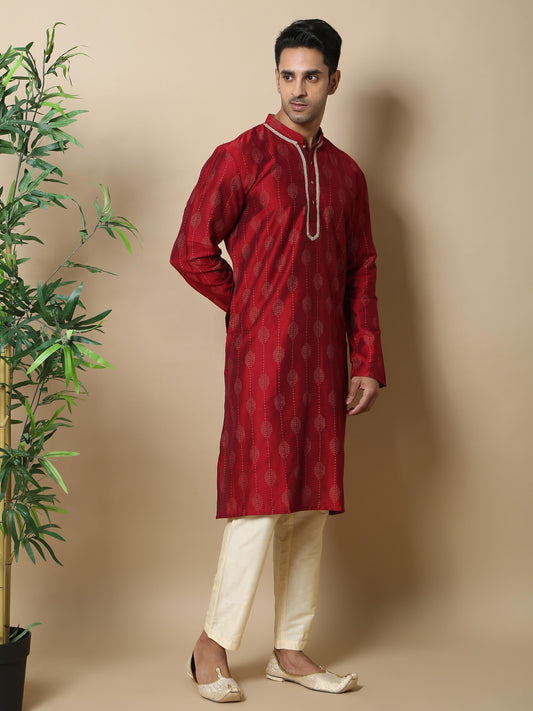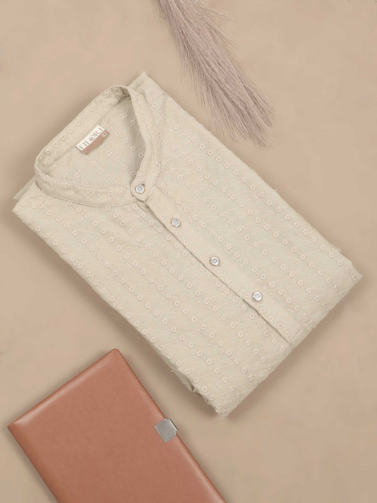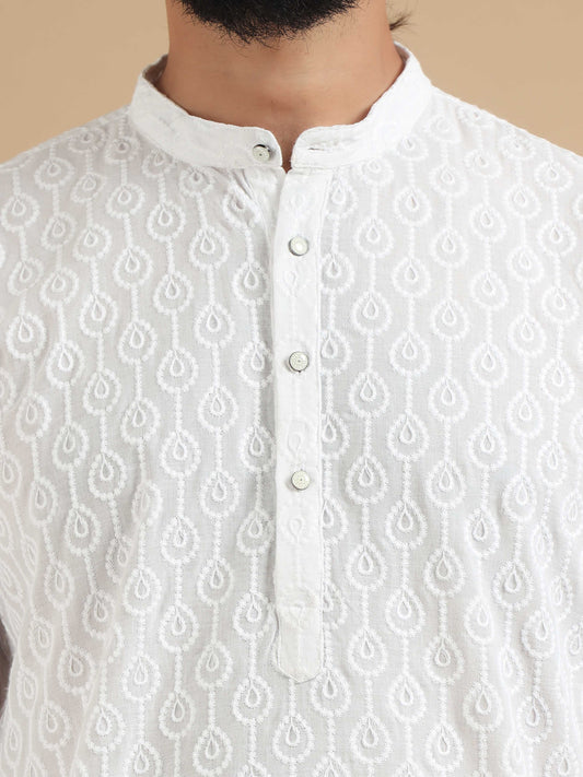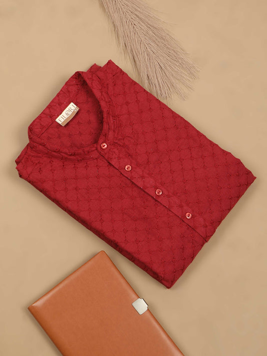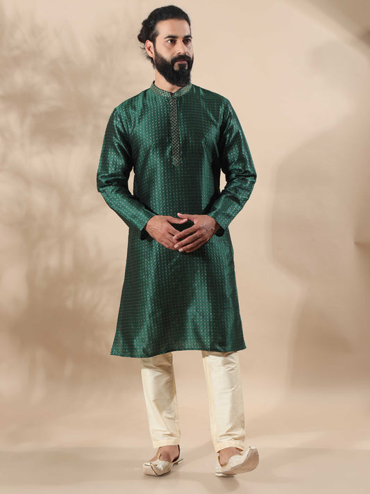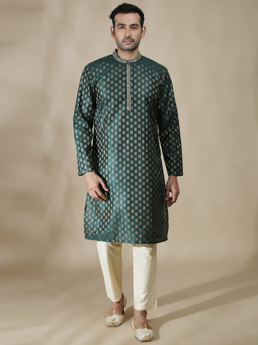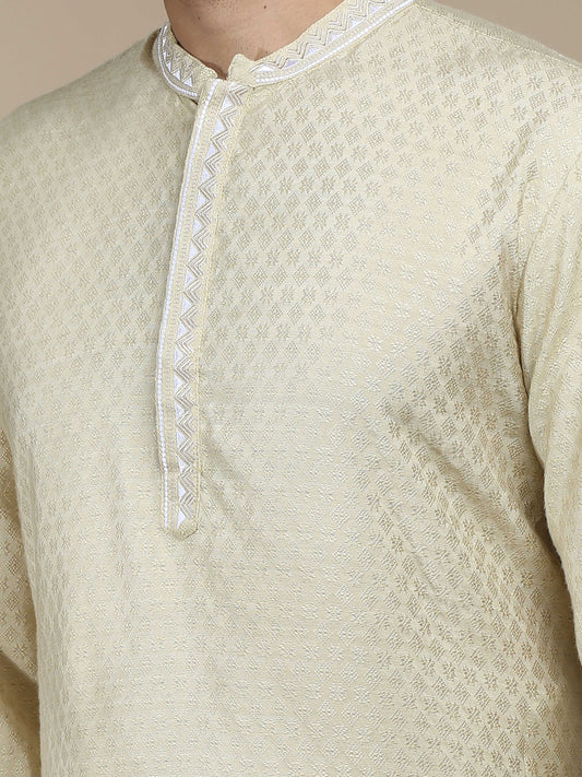 - Intricate Embroidery: Embroidery takes centre stage, with intricate thread work and embellishments adorning collars, cuffs, and plackets, elevating the aesthetic appeal of long kurta for men and adding a touch of opulence.
