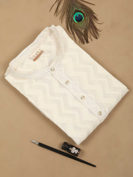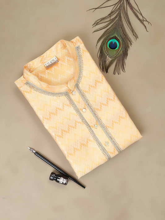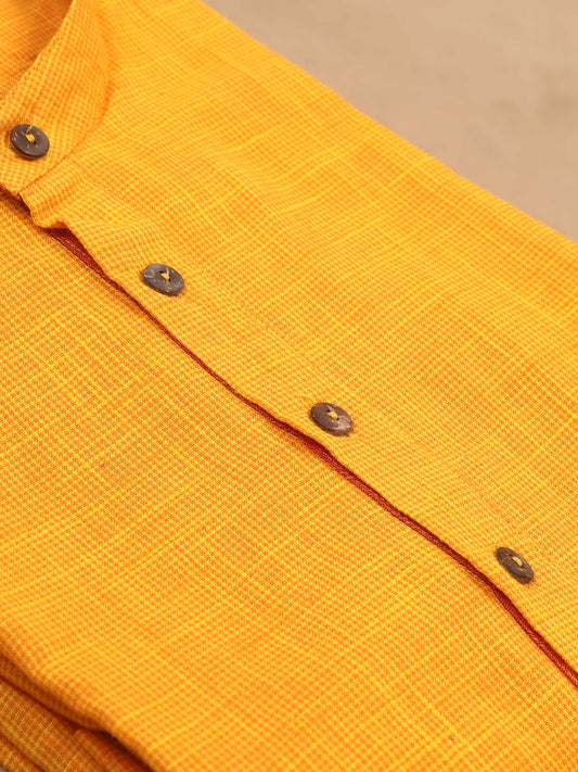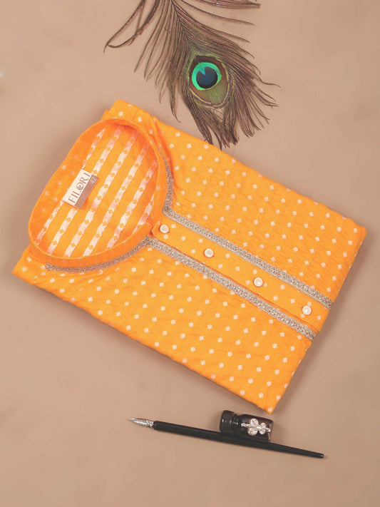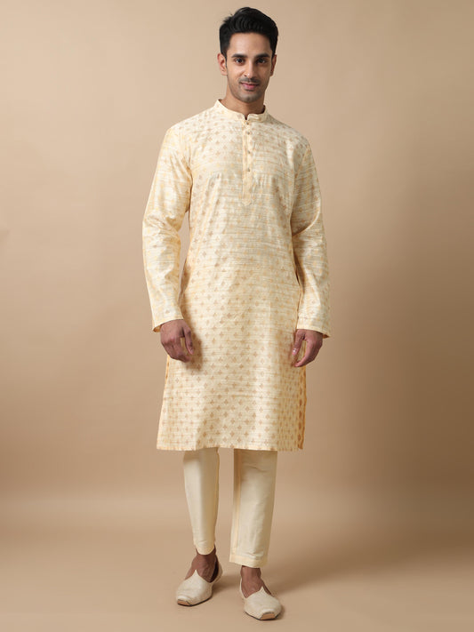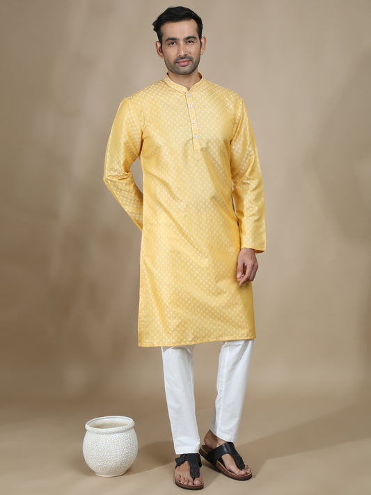 Haldi Yellow and White Banaras Dobby Long Kurta