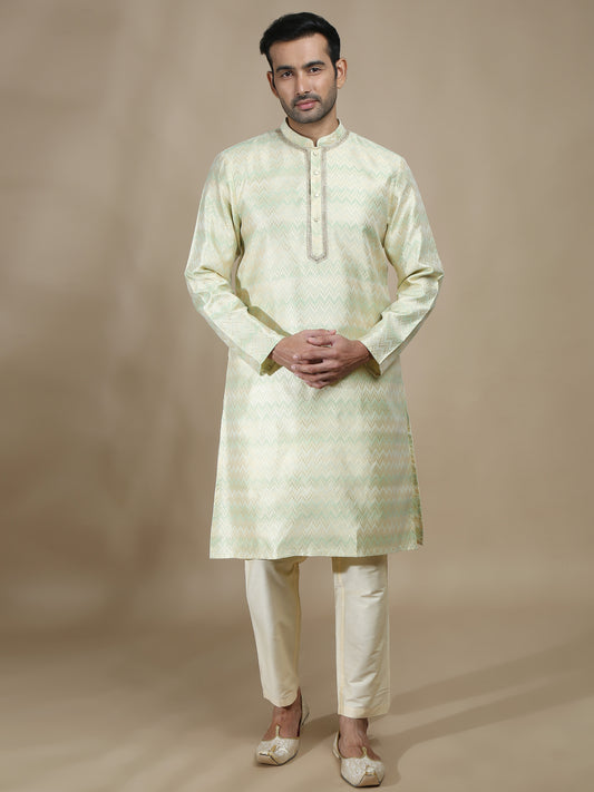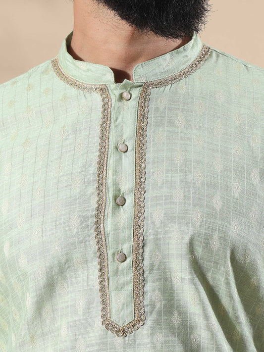 Pista Green Banarasi Chanderi Buta Long Kurta