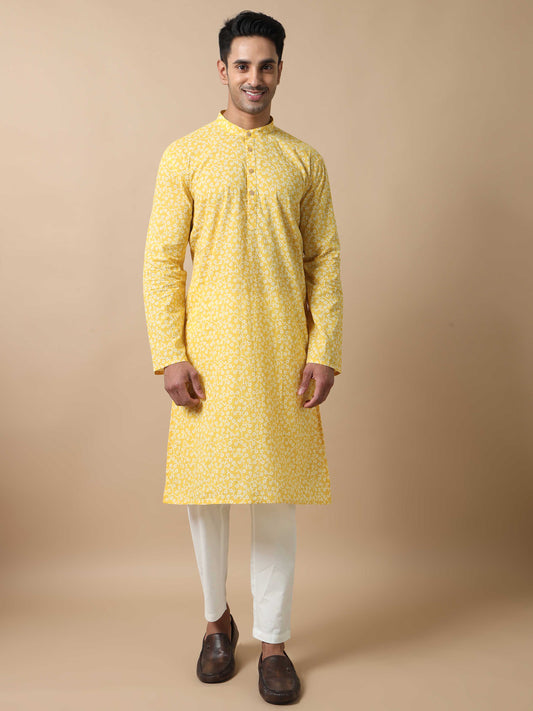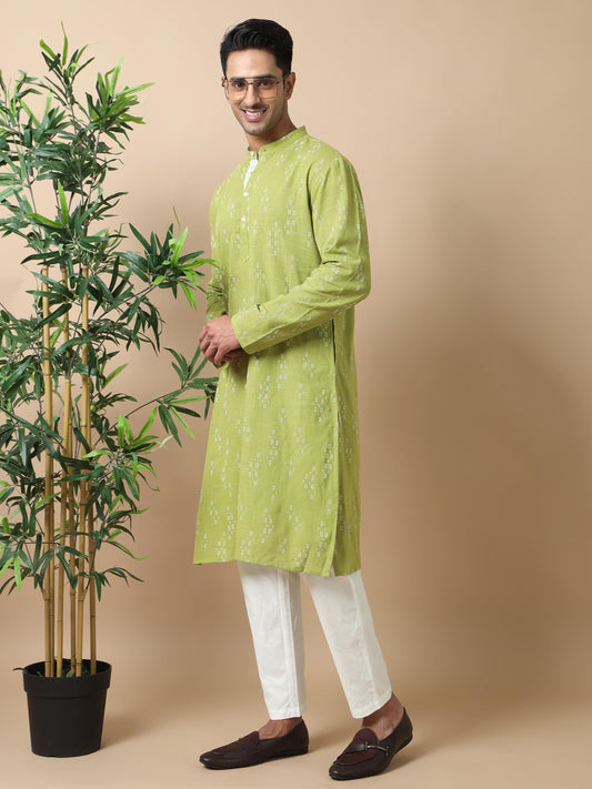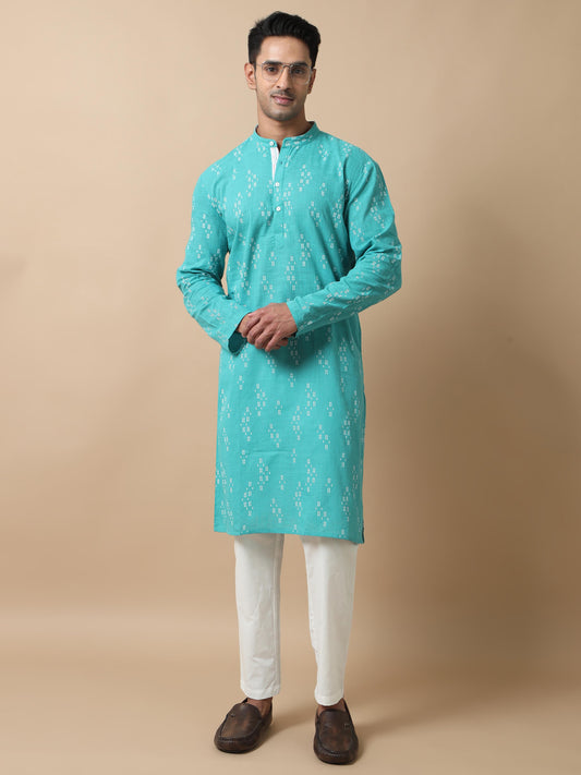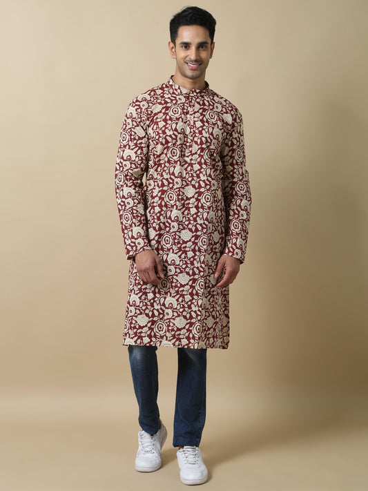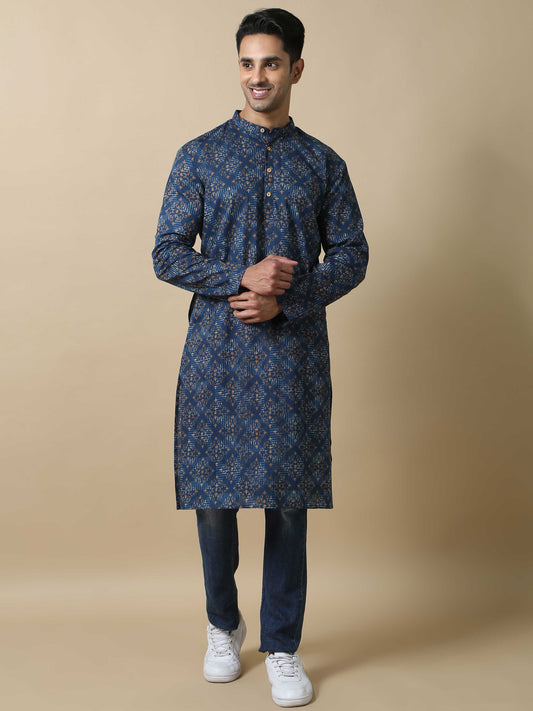 - Casual Chic: Pair a printed long kurta for men with slim-fit trousers or denim jeans for a relaxed yet stylish ensemble perfect for daytime outings or informal gatherings.