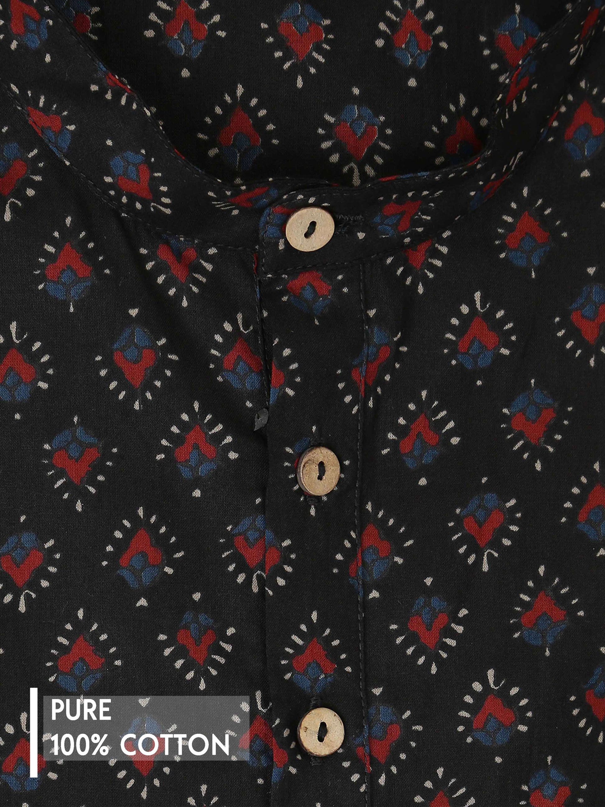 Black Jaipur Printed Short Kurta
